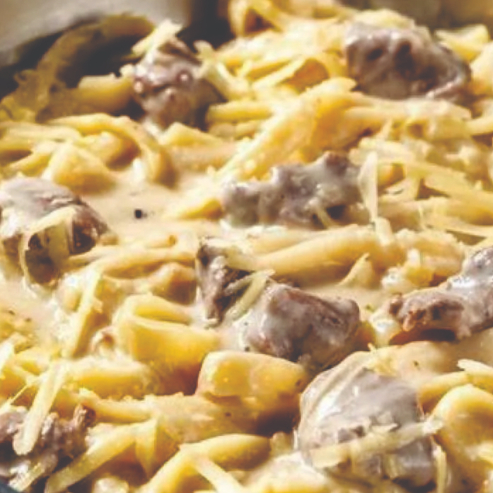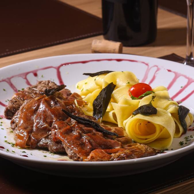 Massa grano duro com tiras de filé mignon ao molho madeira - 2 pessoas
