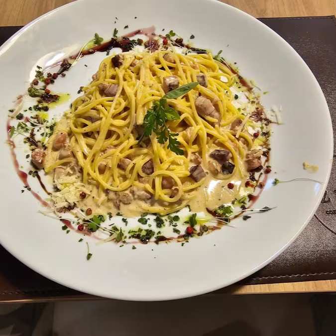 Espaguete, bacon, ovos, parmesão, pimenta do reino