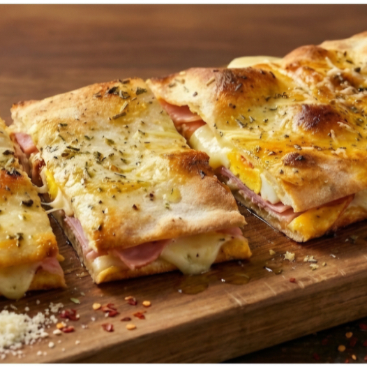 Massa fina e crocante com o recheio inspirado no prato tradicional da casa. Queijo e Bacon na medida certa.