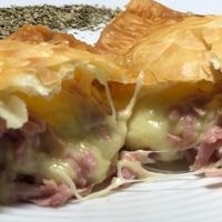 Nosso pastel leva: Queijo, presunto, catupiry, tomate e cebola.