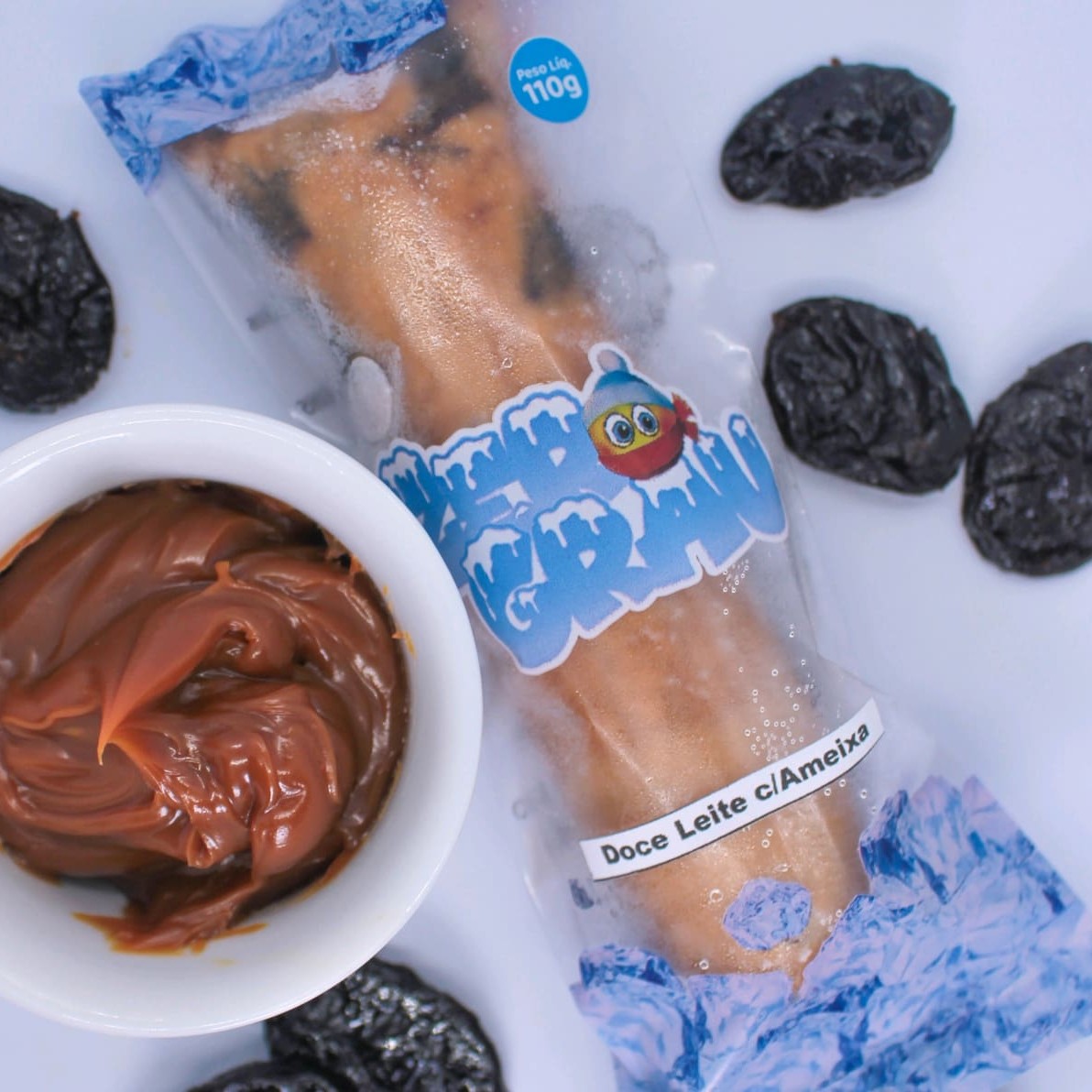 Apresentando o nosso 'Doce de Leite com Ameixa', uma delícia irresistível. Quem poderia resistir ao encanto nostálgico do bom e velho doce de leite? Enriquecido com uma calda de ameixa artesanal maravilhosamente encorpada, este geladinho é uma verdadeira tentação. A cremosidade incrível do nosso doce de leite, aliada ao sabor inigualável da nossa calda de ameixa, faz deste doce um sucesso absoluto. Serve 1 pessoa Aprox. 110g.