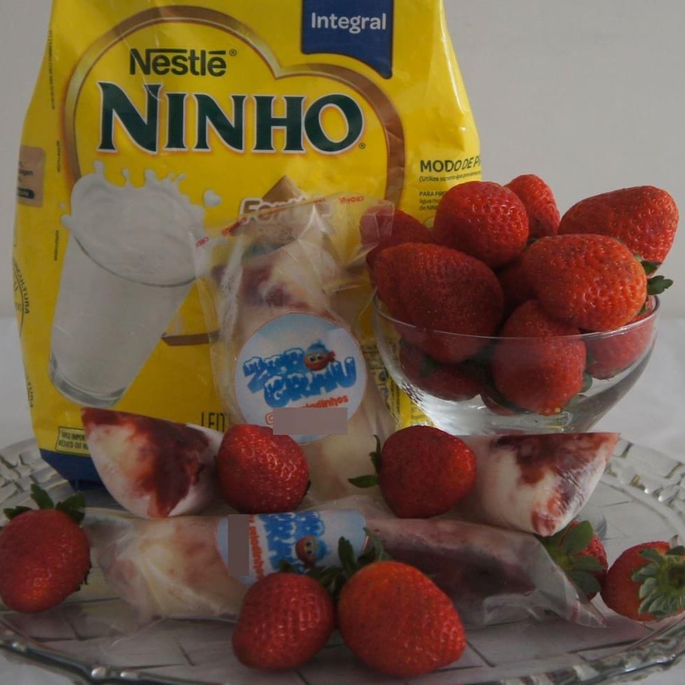 Delicioso geladinho de leite Ninho com nossa receita caseira de geleia de morango, preparada com todo o carinho e cuidado, sem corantes nem conservantes. Não tem como resistir a essa delicia super cremosa e geladinha! Serve 1 pessoa (Aprox 110g)