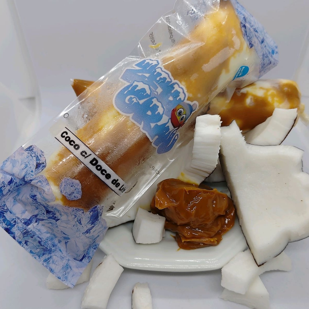 "Nosso ""Geladinho Gourmet"" de coco com doce de leite é uma verdadeira obra de arte! O coco fresco combinado com o doce de leite artesanal resulta em uma experiência única, você não vai ficar fora dessa, né? Serve 1 pessoa (Aprox. 110g)."