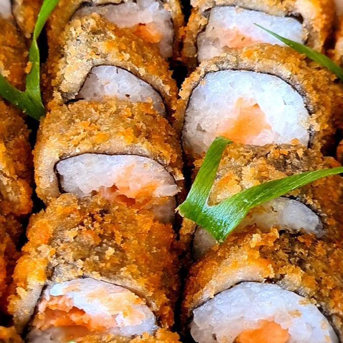 Experiencie nosso 'Temaki Salmão Crispy' da categoria 'Pratos Individuais'. Este prato hábil e artisticamente preparado apresenta o suculento salmão em estilo milanesa, cuidadosamente empanado e frito até a perfeição crocante. Este ingrediente principal é acompanhado por uma generosa porção de cream cheese, que traz uma textura cremosa e suave que equilibra perfeitamente o crocante do salmão. Por fim, a cebolinha, fresca e picada, acrescenta um toque de cor e um sabor delicioso e sutil que completa esta criação culinária. Um prazer para os olhos e para o paladar!