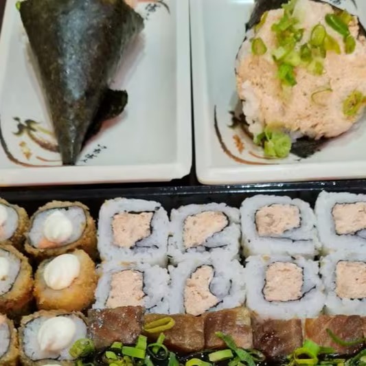 12 hot roll, 12 hossomakis mistos, 12 uramakis mistos , 9 niguiris mistos e 5 joy salmão