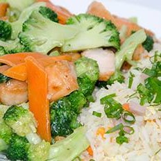 Acompanha gohan ou yakimeshi e legumes na manteiga