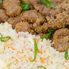 Arroz,Feijão,File De Frango, Torresmo De Salmão (Brinde Batata Frita Chips)