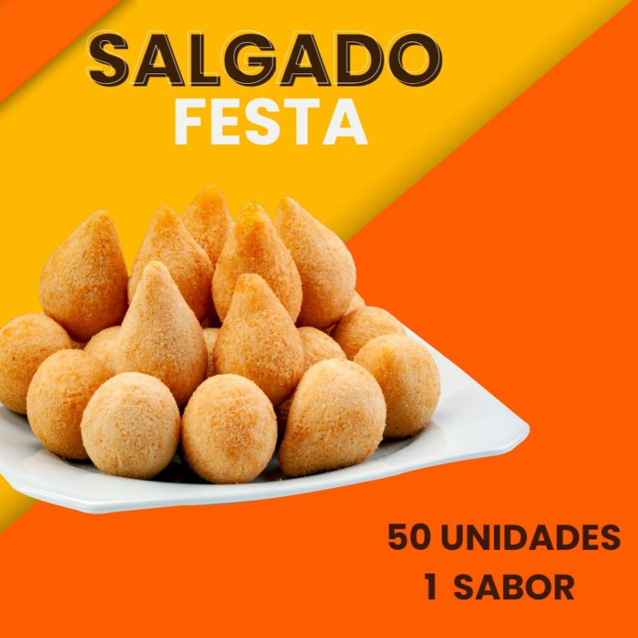 Contém: -50 Salgados do tamanho de festa (aprx. 18 gr), podendo escolher somente um sabor.
