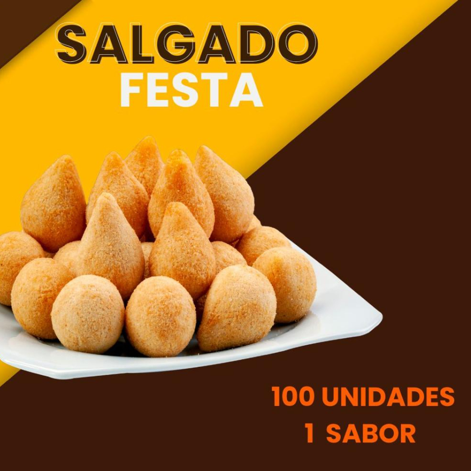 Contém: -100 Salgados do tamanho de festa (aprx. 18 gr), podendo escolher somente um sabor.