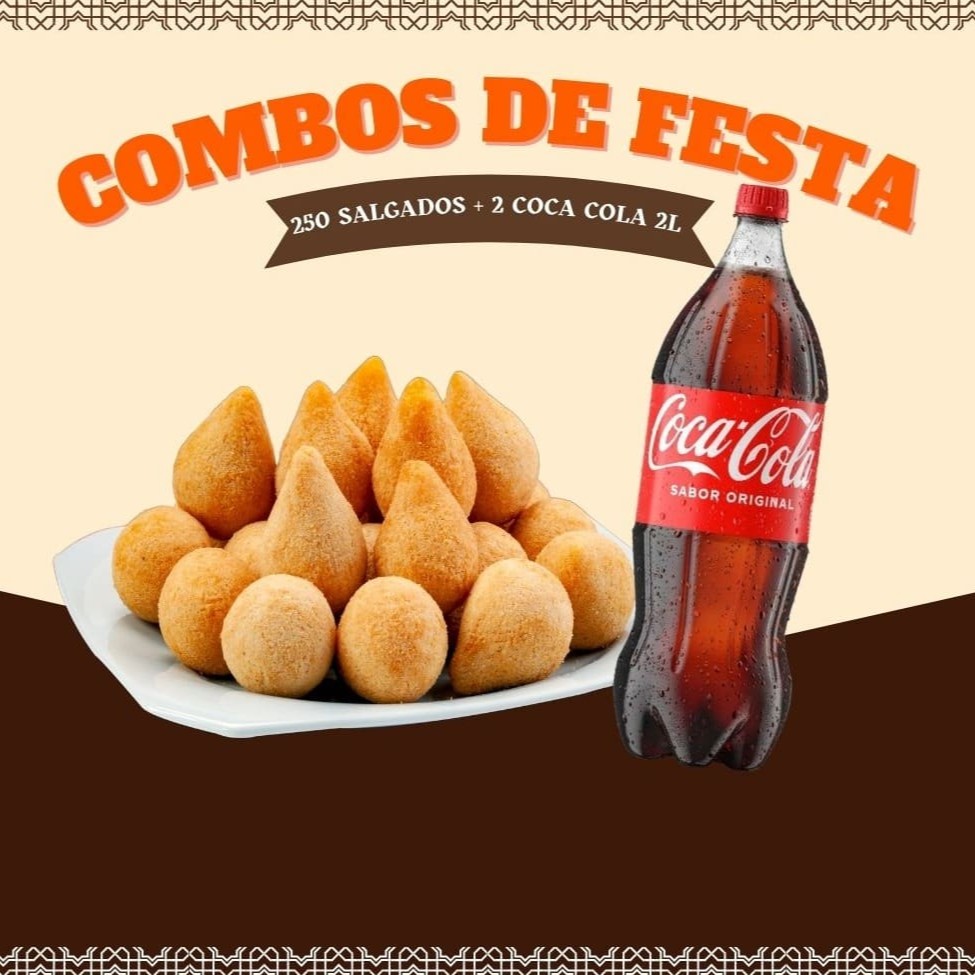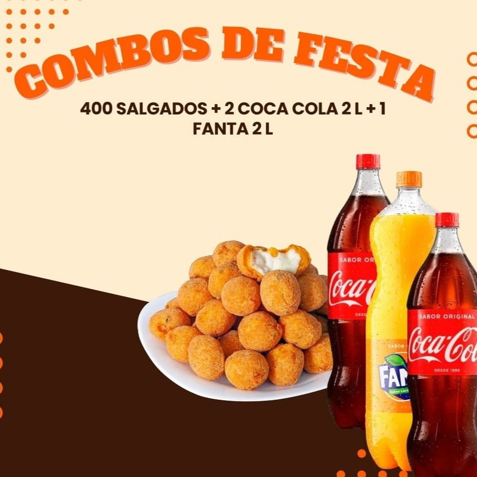 Este combo contém: - 50 salgados festa -1 Refrigerante 2 litros.