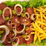 Este item contém: - Serve 2 a 3 pessoas. - Batata Rustica - Bacon ou Calabresa -Molho cheddar