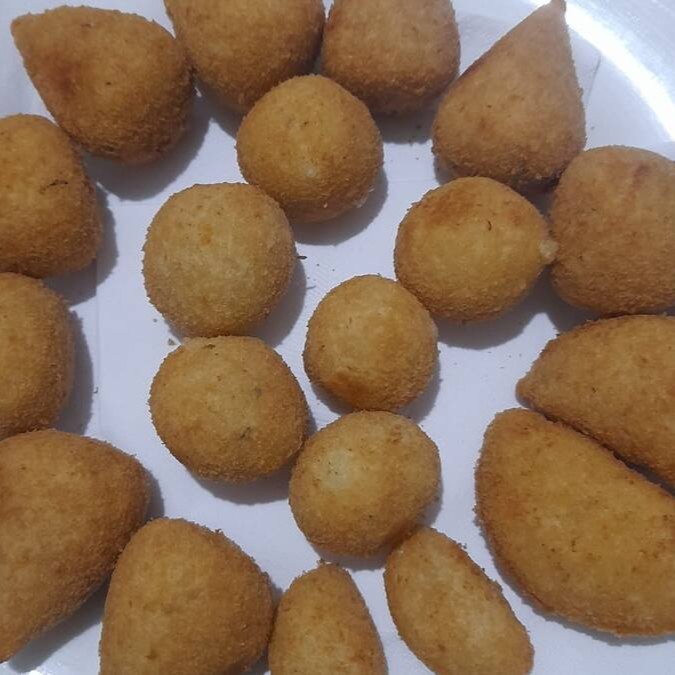 Bolinho de carne feito com massa de batata e leite, recheado com carne patinho.