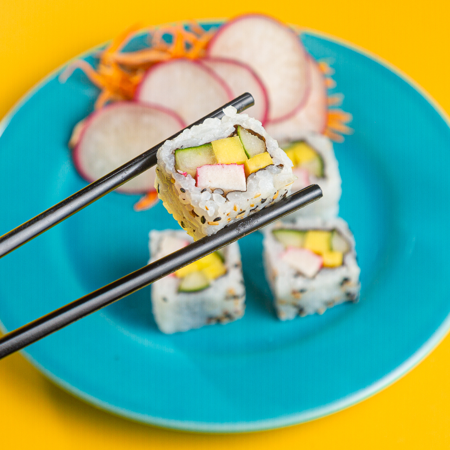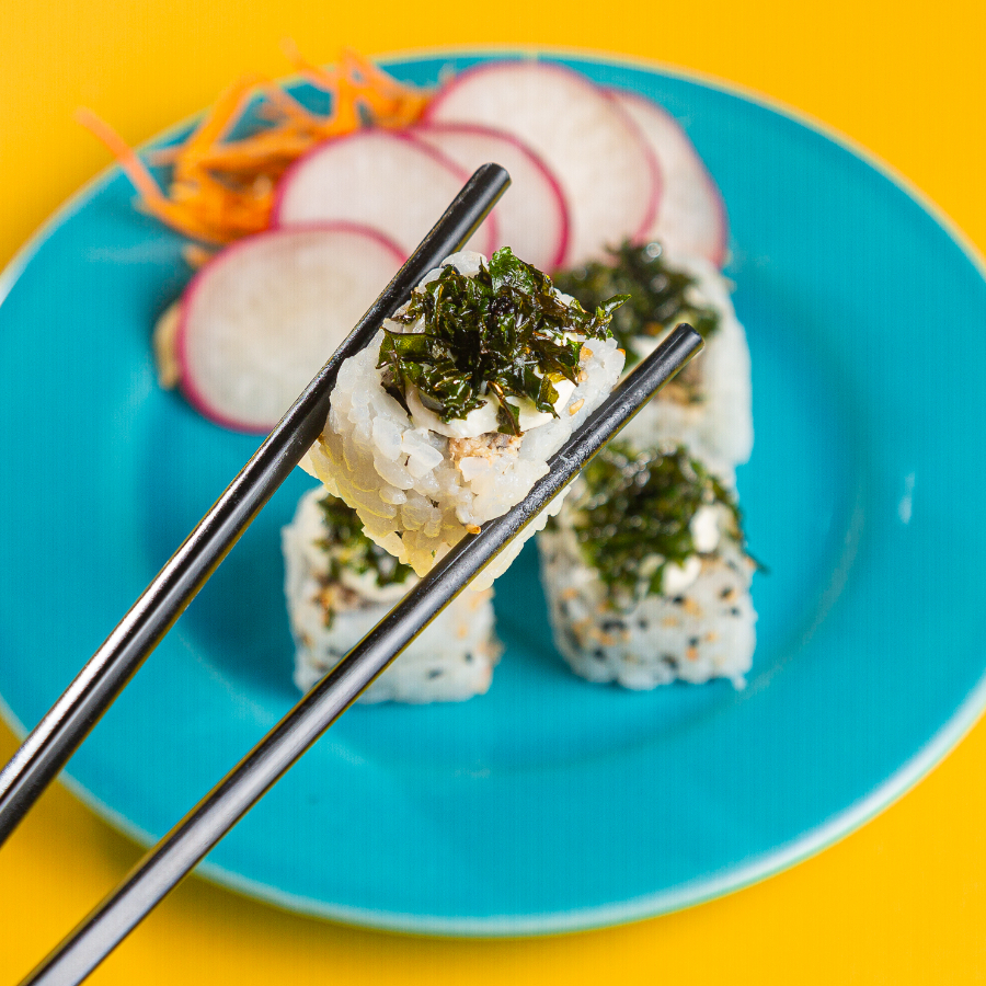 Nori e gohan recheados com deliciosos hot roll em pedaços