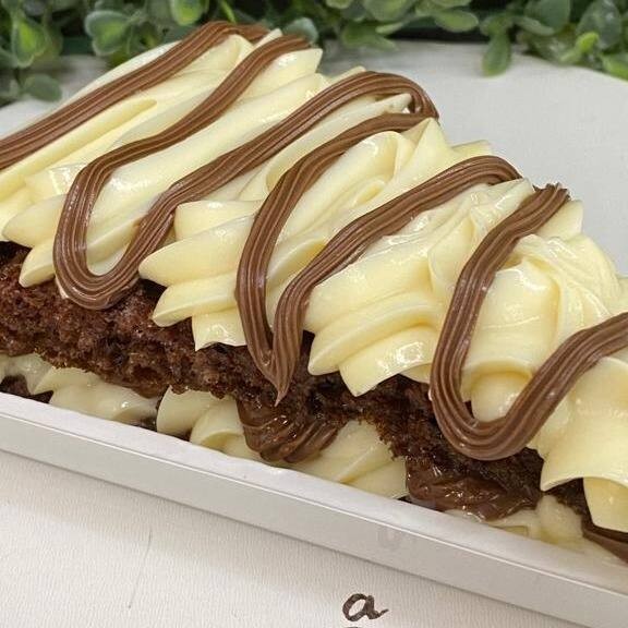 Uma fatia molhadinha feita de bolo de chocolate 50% com uma generosa camada de um delicioso creme belga de Leite Ninho, não poderia faltar Nutella purinha dando aquele sabor que só ela sabe dar.