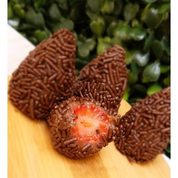 Nós experimentamos e estamos sem conseguir parar de comer. Nossa caixinha de chocolate com um delicioso e cremoso brigadeiro ao leite com uma camada de morangos fresquinhos. Por cima granulado para finalizar com chave de ouro.