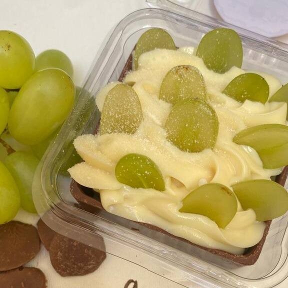 4 mini coxinhas de brigadeiro branco, envolto em 1 uva. Aquele docinho que não é enjoativo e que daria para comer uma caixa cheinha dele.