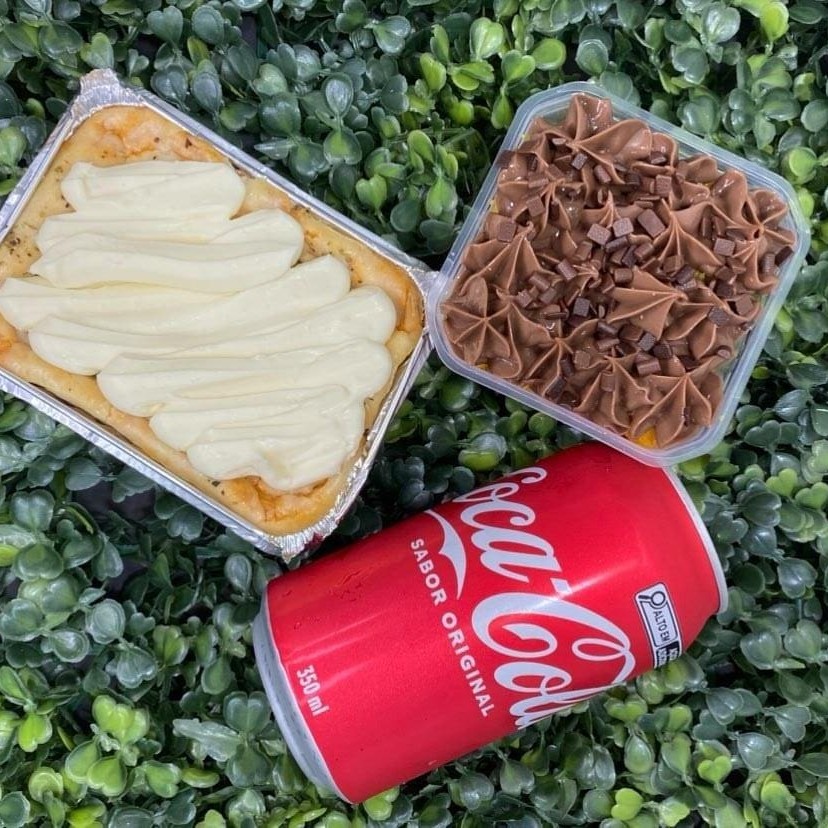 1 Tortinha Gourmet da Vovó 1 Bolo de Pote Cenoura com Brigadeiro 1 Coca-Cola ou Guarana
