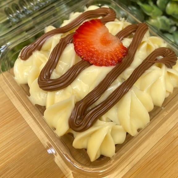 Uma casquinha de chocolate recheada com uma generosa camada de creme de Leite Ninho, morangos frescos e Nutella purinha purinha.