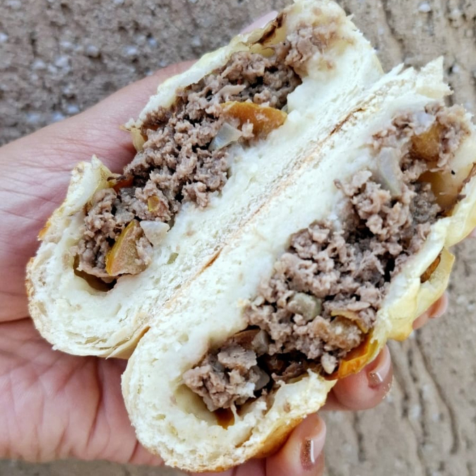 Massa deliciosamente macia recheada com carne, temperada com limão, tomate e cebola.
