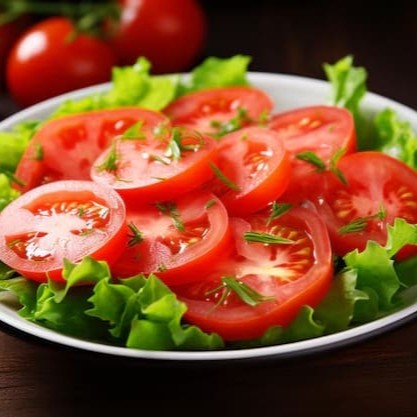 Salada fresca e vibrante, combinando a crocância do alface com a suculência dos tomates. Cores vibrantes se entrelaçam em um prato leve e saudável, proporcionando uma explosão de frescor e sabor, perfeito para uma refeição revitalizante.