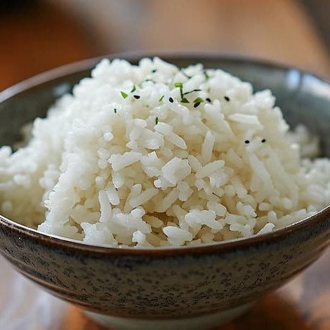 Arroz perfeitamente cozido, leve e soltinho, com grãos delicadamente separados, proporcionando uma textura irresistível e um sabor suave que complementa qualquer refeição