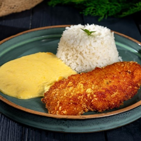 Delicie-se com um clássico irresistível que combina sabor, textura e aconchego! Nosso prato apresenta um suculento filé de frango empanado, frito até alcançar uma crocância dourada e perfeita. Acompanhado por um arroz soltinho e um creme de milho cremoso, preparado com grãos frescos e um toque de especiarias que realçam seu sabor. Uma harmonização perfeita que proporciona uma experiência rica e ch
