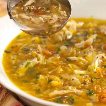 Nossa 'Canja de Galinha' é uma deliciosa sopa da categoria 'Caldos e sopas', meticulosamente preparada com arroz suavemente cozido, frango desfiado tenro e nutritivos legumes selecionados. Tudo isso é delicadamente misturado a um mix de temperos naturais que proporcionam um sabor único e reconfortante. Enviado quentinho, este prato é a perfeita combinação de sabor e nutrição, ideal para aquecer o
