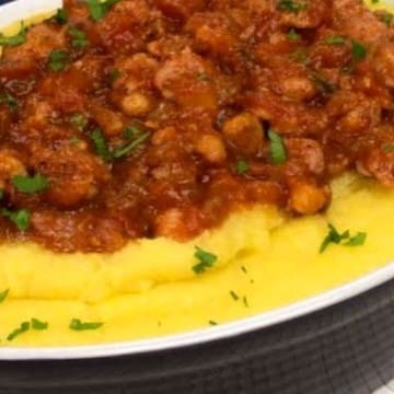 Este prato especial, a Polenta Cremosa com Ragu, é uma verdadeira tentação. Uma polenta maravilhosamente deliciosa, meticulosamente preparada com um caldo de legumes frescos, enriquecida com a suavidade da manteiga e a intensidade do queijo parmesão. Acompanha um molho pomodoro, preparado à perfeição, que acrescenta um toque robusto e saboroso a este prato. Cada garfada promete uma experiência gas