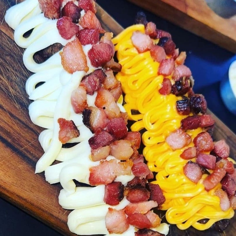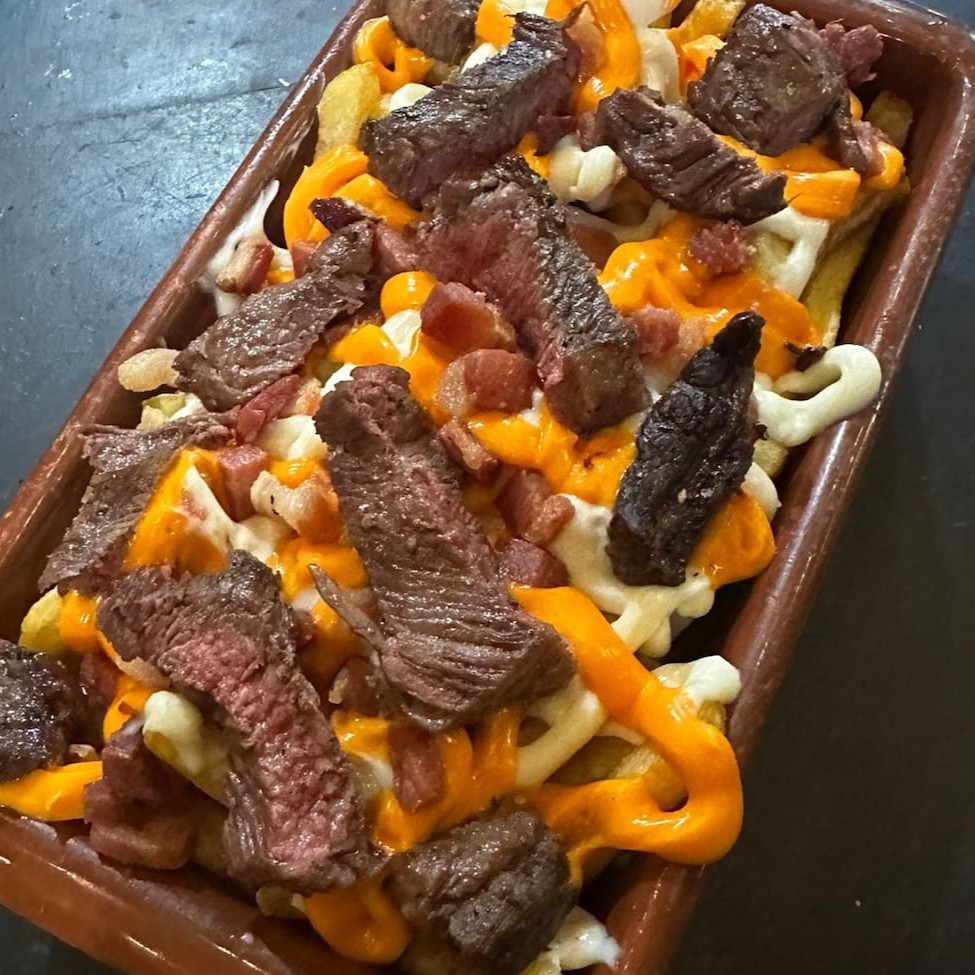 Saborosas 'Fritas Tchê', um acompanhamento requintado e generoso. Uma porção de 500gr de fritas cuidadosamente preparadas, douradas e crocantes. Vêm maravilhosamente acompanhadas por um cheddar cremoso, Catupiry autêntico e irresistível, bacon crocante e defumado, e tiras de picanha suculentas, assadas ao ponto perfeito. Uma combinação de sabores que promete deleitar o seu paladar e transformar a