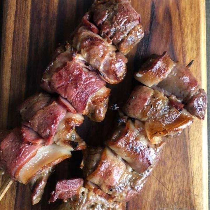 Apresentamos o nosso afamado Espeto Recheado, uma estrela da categoria 'Espetos Especiais'. Este prato, meticulosamente preparado, traz uma harmoniosa combinação de carne suculenta espetada, generosamente recheada com o cremoso Catupiry ou o rico e saboroso Cheddar, ambos encerrados com uma camada crocante e deliciosamente defumada de bacon. Um deleite irresistível para os amantes da boa culinária