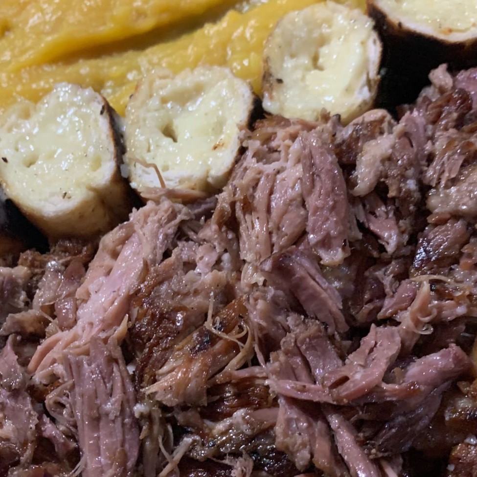 Uma deliciosa costela desmanchando e sem osso . Acompanha mandioca na manteiga e pão de alho