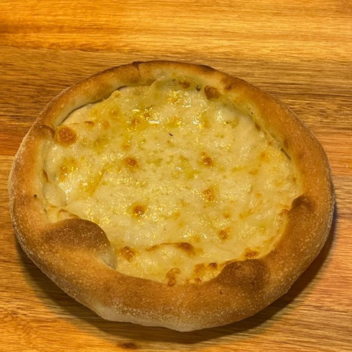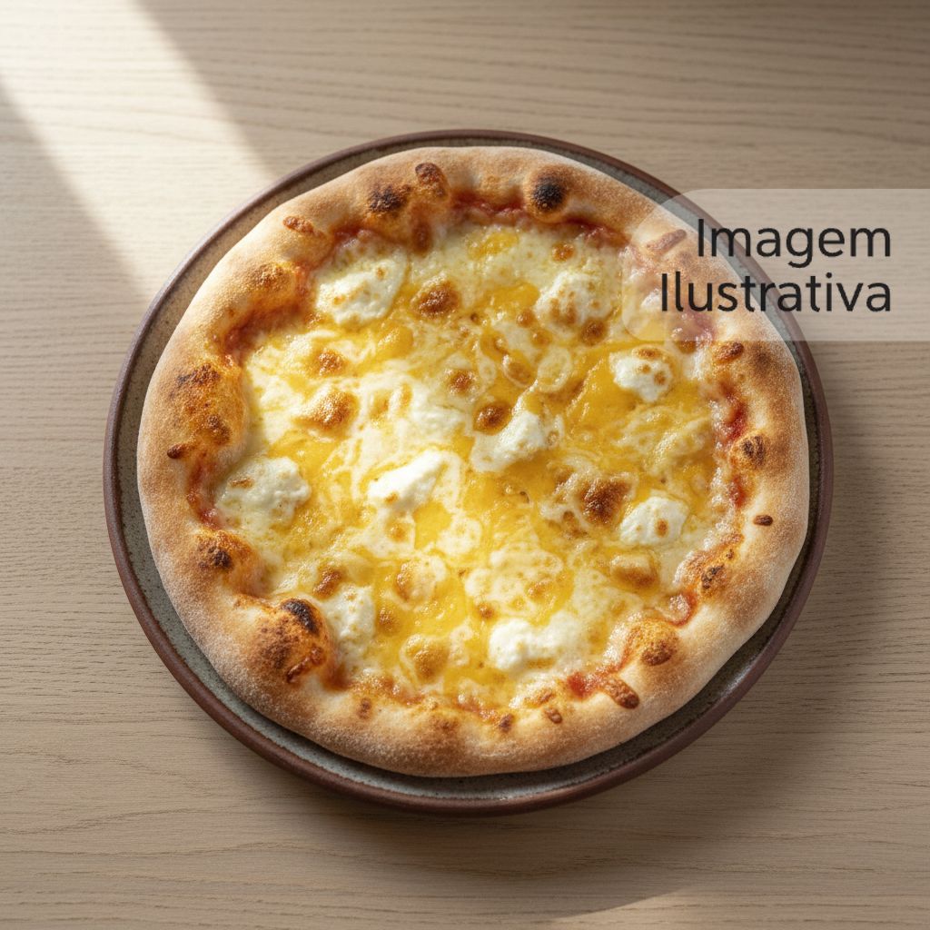 Uma combinação irresistível de quatro queijos derretidos em uma pizza.