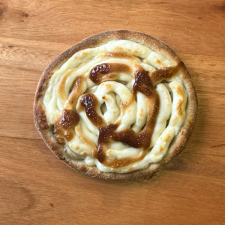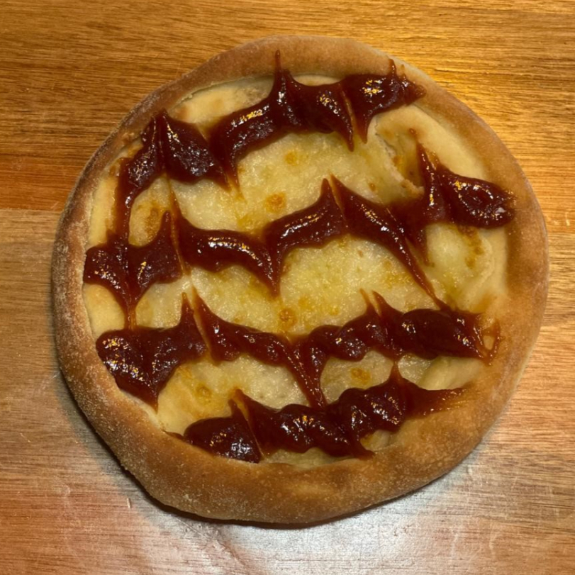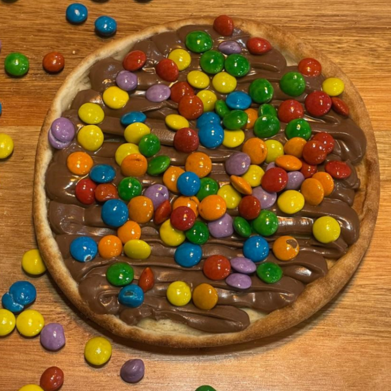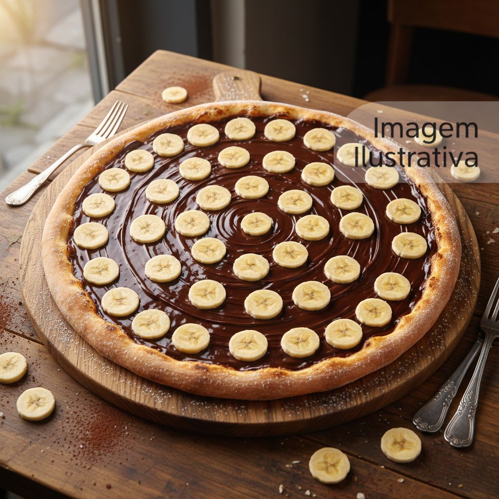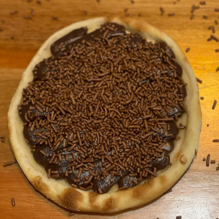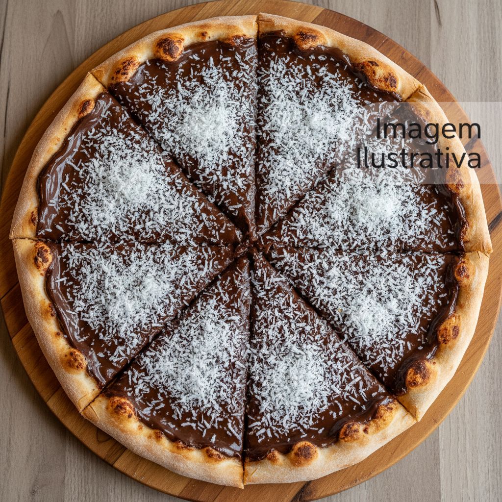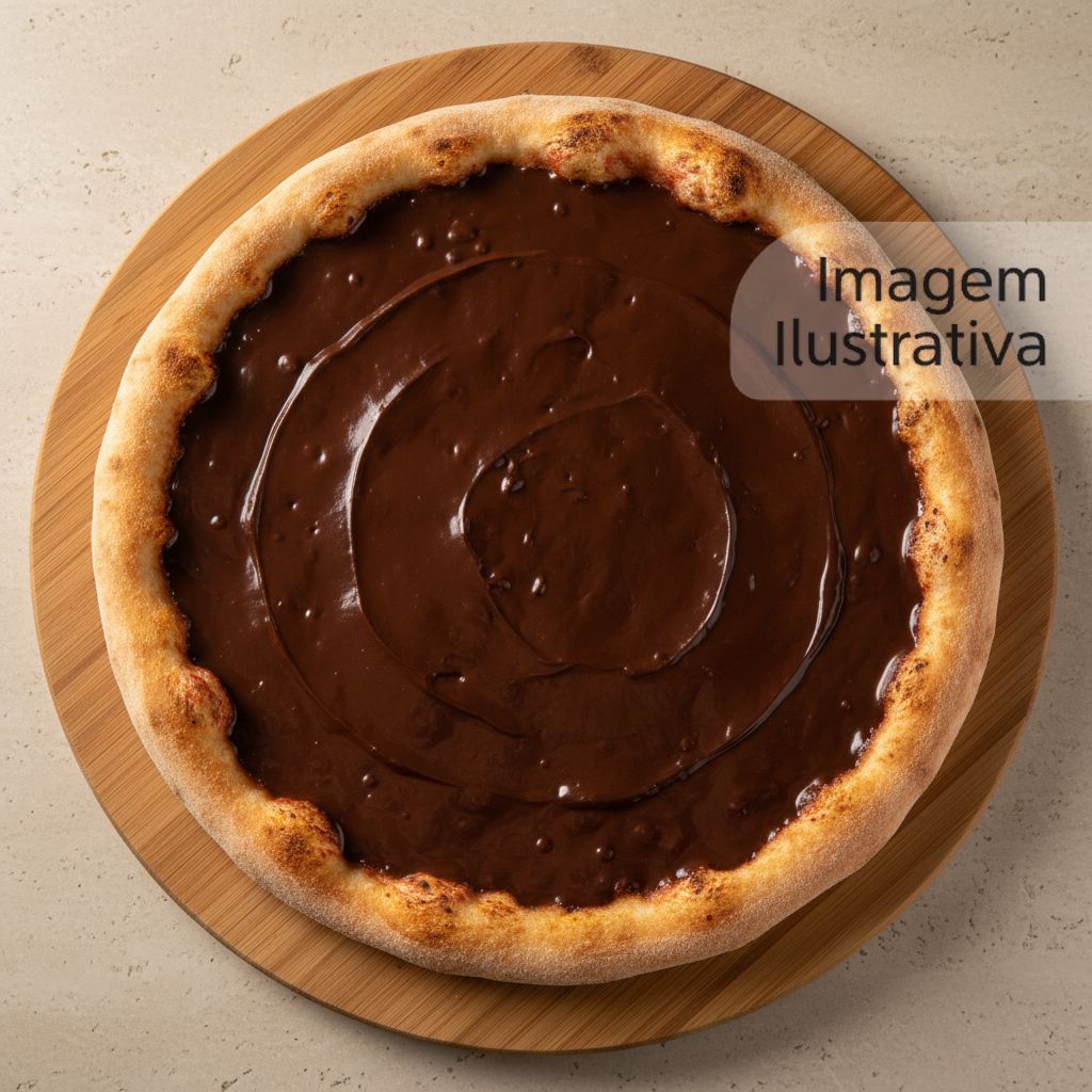 Deliciosa pizza com massa crocante, generosamente coberta com chocolate derretido.