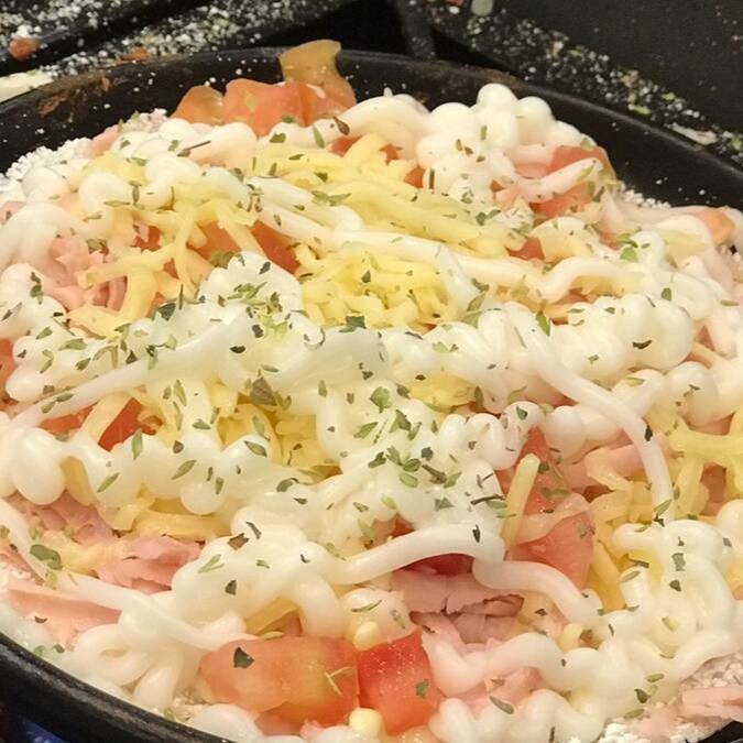 Presunto, Queijo, Catupiry, cheddar, tomate e orégano