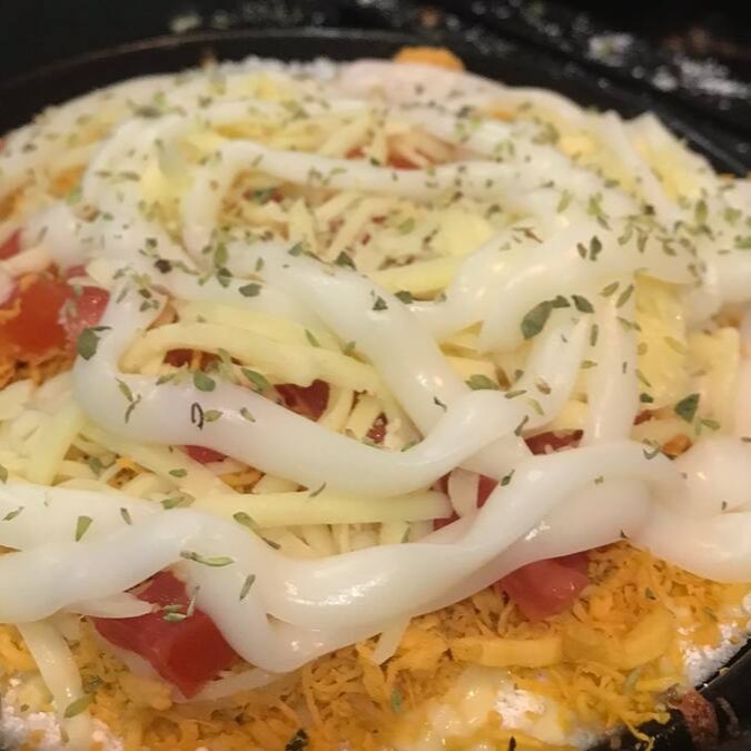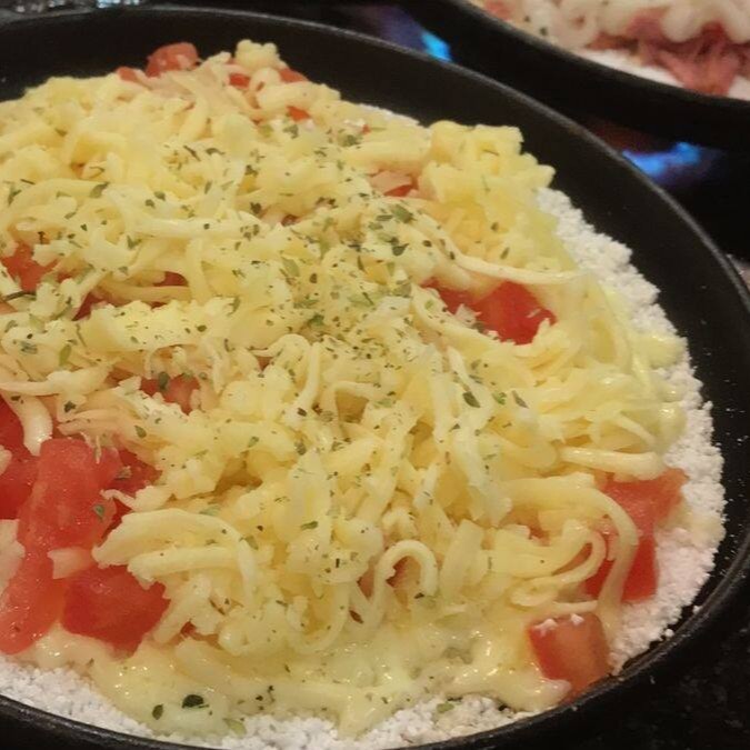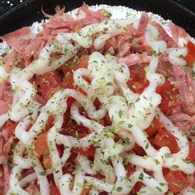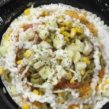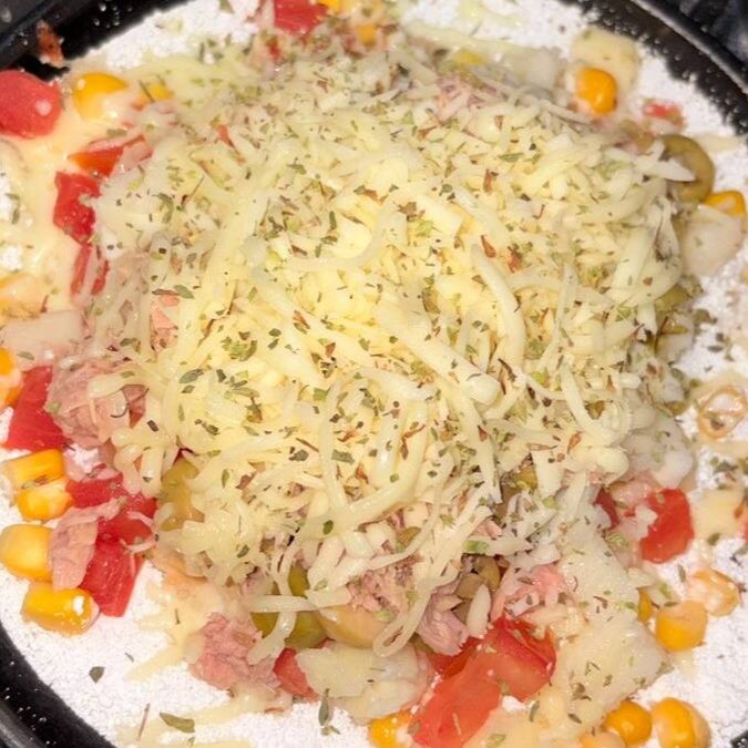 Atum queijo, palmito milho, azeitona tomate e orégano