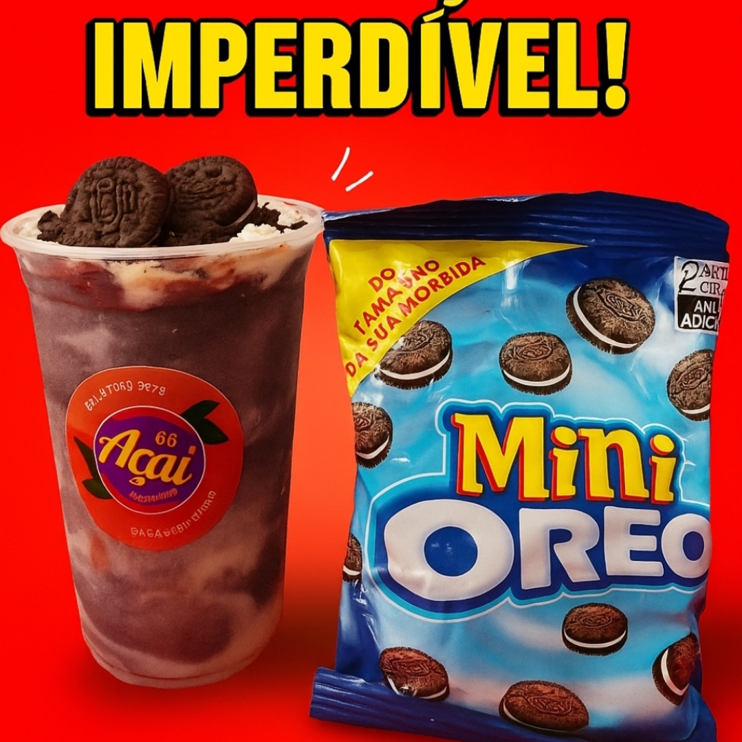 Copo 300 ml de açaí + Oreo triturado + Leite condensado + Leite em pó + Mini Oreo. Vem experimentar essa delicia!