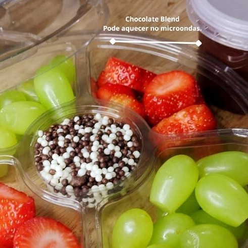 Frutas fresquinhas com acompanhamento a sua escolha e Chocolate Blend tudo incluso. Serve até 3 pessoas. Obs.: O chocolate Blend é enviado a parte 200ml em recipiente que pode ser aquecido somente no microondas. Aqueça de 30 em 30 segundos até chegar na temperatura ideal desejada. *O Blend será entregue em temperatura ambiente pronto para consumo.