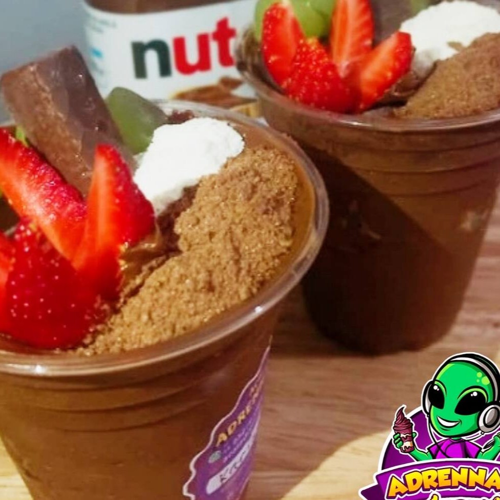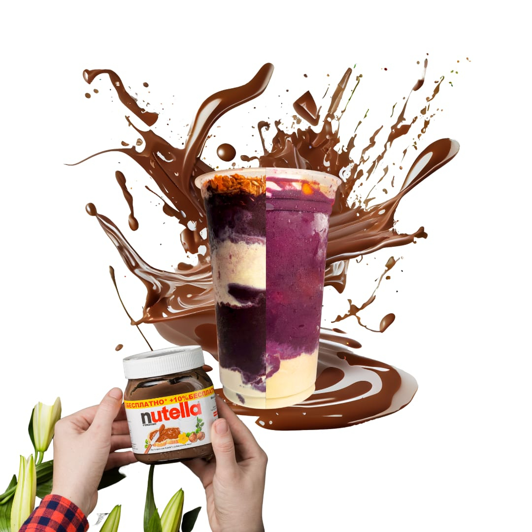 "Apresentamos o 'Cup Trufado Nutella 400º até na tampa', uma exclusividade só encontrada aqui. É uma deliciosa combinação de açaí com cremes irresistíveis, enriquecido com frutas frescas. Além disso, conta com acompanhamentos que irão fazer você salivar de desejo. Mas a verdadeira estrela é o autêntico creme de avelã com cacau ""Nutella"". Tudo isso servido em um copo bolha de 400ml recheado do início ao fim. Não perca essa delícia!"
