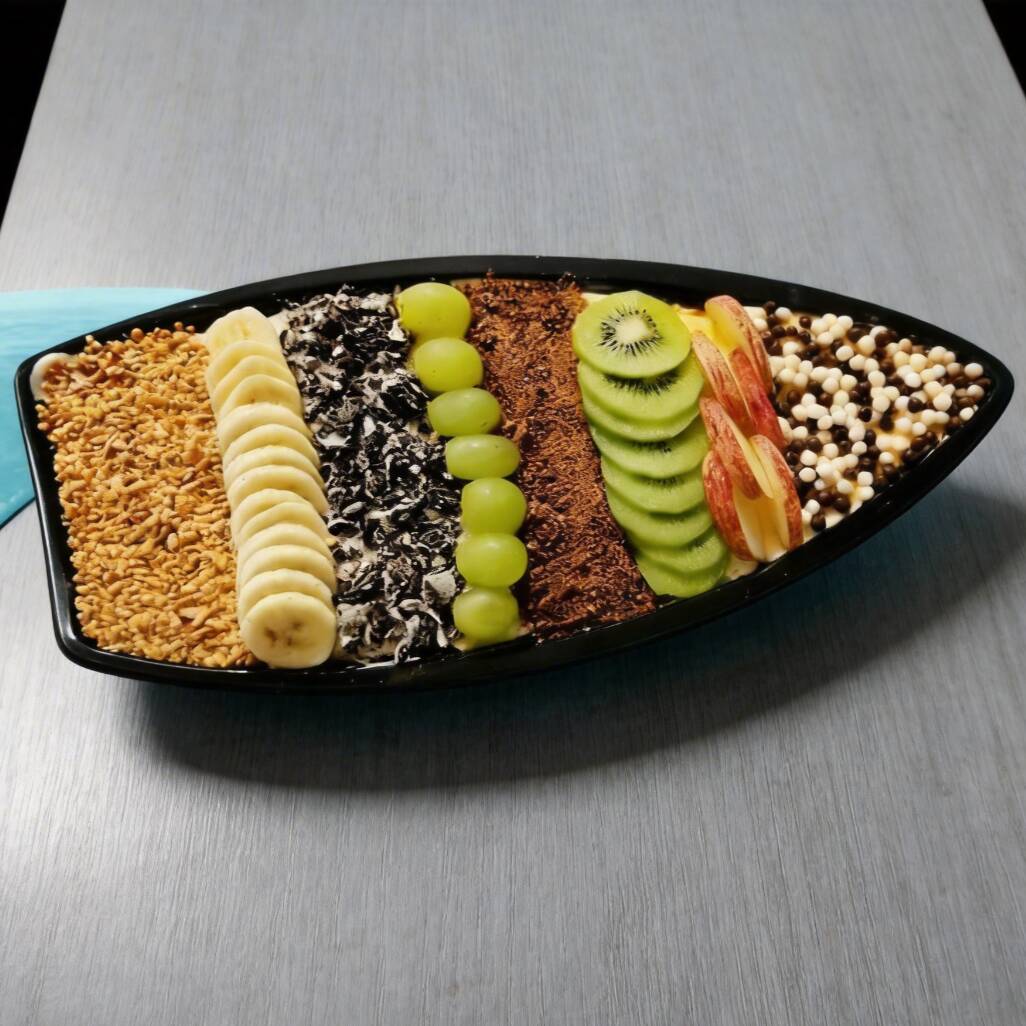 Delicioso açaí com opções de ice cream saborosos, mais frutas fresquinhas e acompanhamentos de dar água na boca tudo incluso. Serve até 4 pessoas. Barca 27cm X 15cm servidassa para compartilhar com as pessoas que você mais gosta. S2