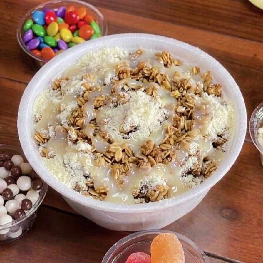 Delicie-se com nosso autêntico açaí natural , Este copo é a combinação perfeita de sabor e saúde, com frutas frescas e complementos de sua escolha. Você tem a liberdade de escolher seu açai mais tradicional ou gourmetizado com até quatro adicionais gratuitos e mais 20 opções extra. Nossos copos são armazenado a -26c em copos de isopor projetados para preservar a qualidade e a temperatura ideal do
