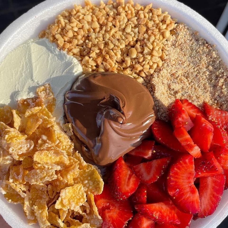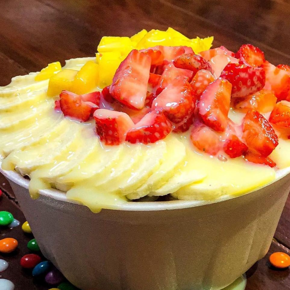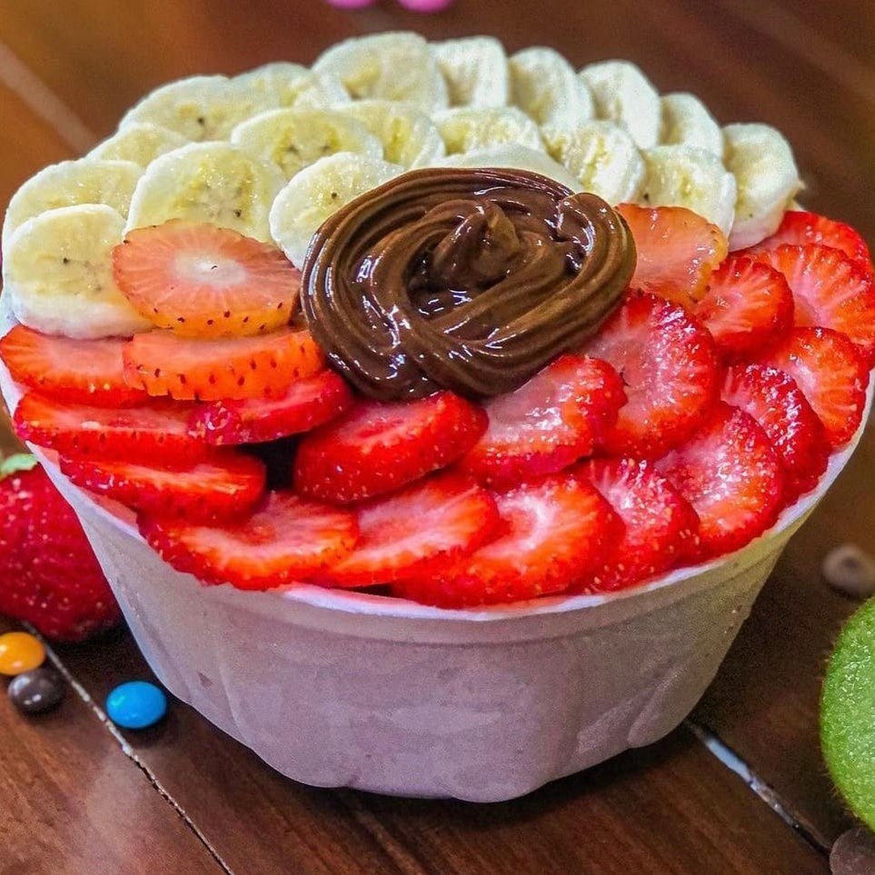 Delicie-se com nosso autêntico açaí natural , Este copo é a combinação perfeita de sabor e saúde, com frutas frescas e complementos de sua escolha. Você tem a liberdade de escolher seu açai mais tradicional ou gourmetizado com até quatro adicionais gratuitos e mais 20 opções extra. Nossos copos são armazenado a -26c em copos de isopor projetados para preservar a qualidade e a temperatura ideal do