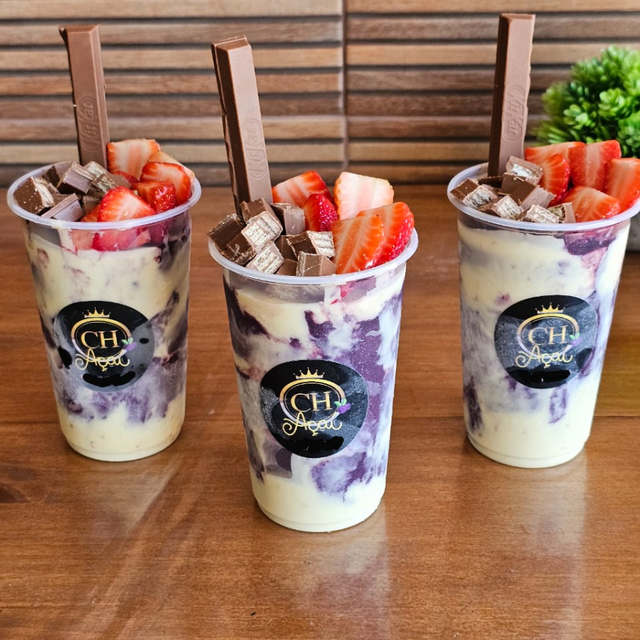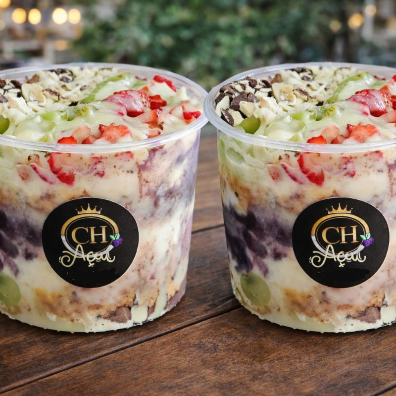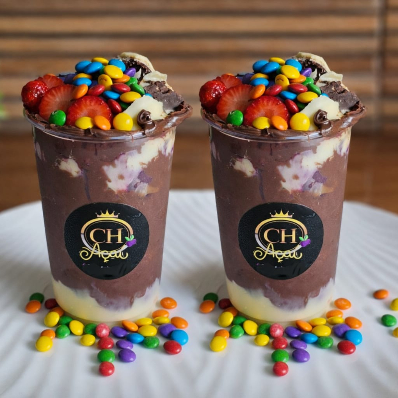 Monte seu Açai Com Mais de 30 opções de Complementos! Monte da Forma e do Gosto que você mais Gosta, com as Opções a Baixo podendo escolher as Frutas e os Doces como desejar.