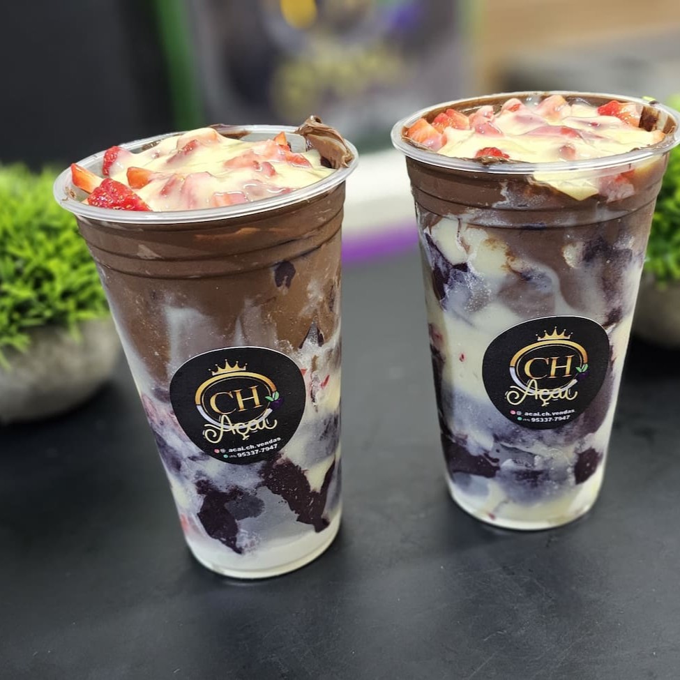 Monte seu Açai Com Mais de 30 opções de Complementos! Monte da Forma e do Gosto que você mais Gosta, com as Opções a Baixo podendo escolher as Frutas e os Doces como desejar.
