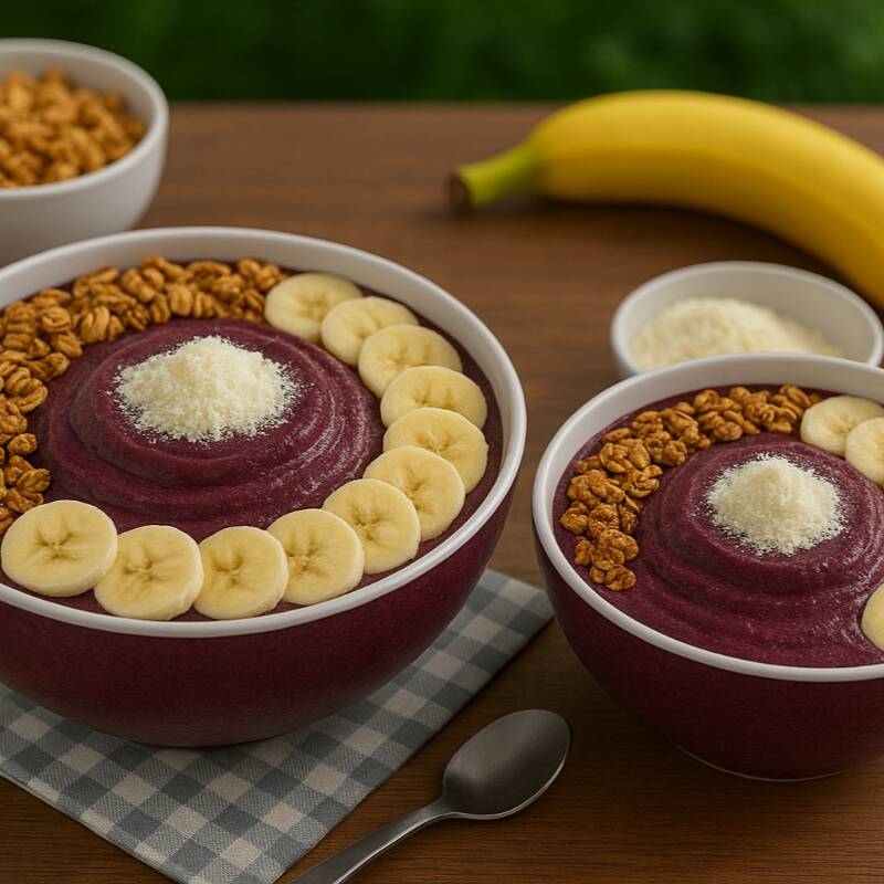 Dois deliciosos açaí de 300ml cada, super cremoso com granola, leite em pó, banana e leite condensado.