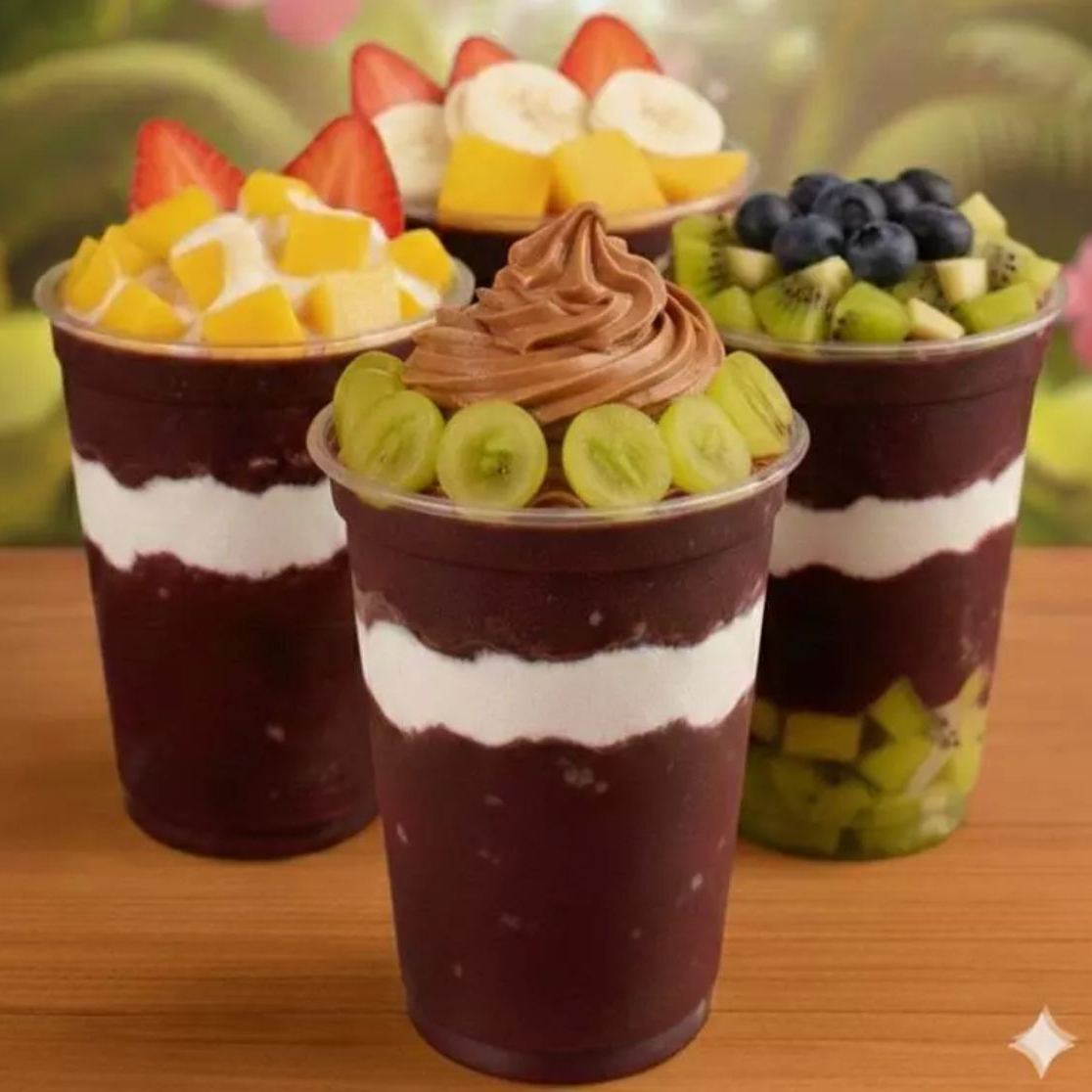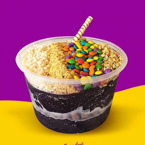 Nosso delicioso açaí cremoso veio com uma linha de deliciosos copos Premium Nossa tigela de açai vão com 3 acompanhamentos de sua escolha Todos adicional serão enviados juntamente a Tigela .
