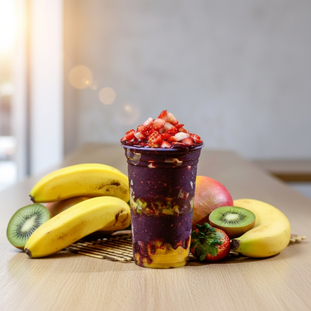 Nosso delicioso misto amado por todos Açaí + Cupuaçu+ 3 acompanhamentos de sua escolha .