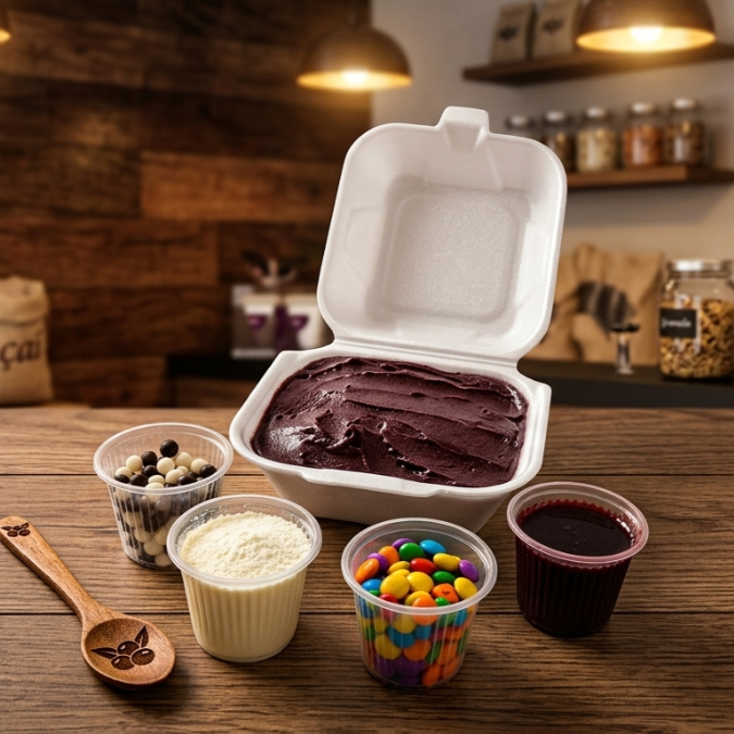 🥥 Cupuaçu no Copo – Cremoso, Refrescante e Irresistível! 🥥 Se você ama sobremesas com sabor marcante, vai se apaixonar pelo nosso cupuaçu super cremoso! Preparado com ingredientes selecionados, ele chega no ponto perfeito: geladinho, consistente e com aquele toque azedinho natural que só o cupuaçu tem. 🤤✨ E o melhor? ✅ Inclui adicionais ✅ Mais de 20 opções de acompanhamentos para você montar do jeitinho que quiser! Escolha entre frutas frescas, granolas, paçoca, leite condensado, chocolates, toppings crocantes e muito mais. Monte sua combinação perfeita e aproveite essa delícia! 💛 Cupuaçu que surpreende no sabor e conquista no primeiro colherada!