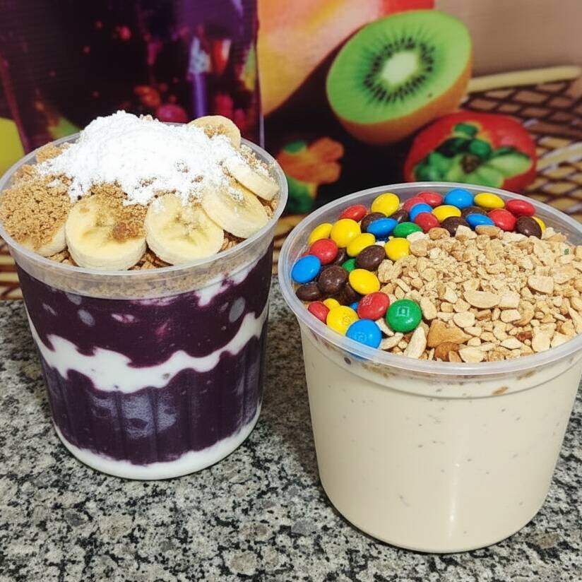 A escolha perfeita para compartilhar felicidade e muito recheio com quem você mais gosta. Pote de Açaí (1 Litro): Pura energia e aquele sabor tradicional que é impossível resistir. Pote de Cupuaçu (1 Litro): Uma explosão de cremosidade e o frescor tropical que surpreende o paladar. ✅ Liberdade na Escolha: Aqui, quem manda é o gosto da sua galera! Personalize seus potes com nossa seleção exclusiva de 25 complementos (temos frutas selecionadas, chocolates de primeira, itens crocantes e coberturas maravilhosas). Crie suas próprias combinações, alterne as camadas e saboreie o que há de melhor por um valor promocional feito para o seu bolso!