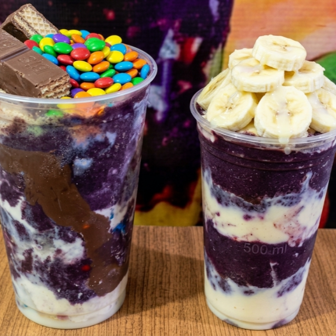 🥤 Combo Casal (770ml + 500ml) A solução completa para o lanche a dois. • Copo Grande (770ml): Muita energia e sabor para quem quer mais. • Copo Médio (500ml): O equilíbrio perfeito. ✅ Personalização Total: Escolha entre nossa lista de 25 acompanhamentos (frutas, coberturas, cereais e chocolates). Monte camadas deliciosas e aproveite o melhor açaí da região com um preço especial de combo!
