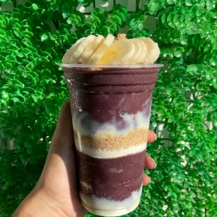 Gostosa vitamina de açaí cremosa com até 4 acompanhamentos